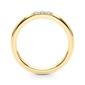 Experience the everlasting beauty of our Wedding Band that exudes a timeless charm. Adorned with three gracefully placed diamonds, this exquisite piece resonates with a hint of refinement. Designed to represent the journey of your everlasting love, it brings together the essence of the past, present, and future, creating an emblem of eternal devotion.
