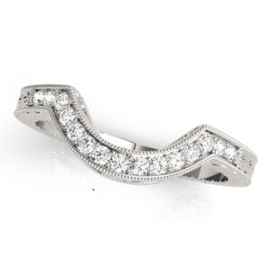 An exquisite arched design adorned with pave-set diamonds, featuring delicate beaded edges and engraved walls, exuding vintage romance.