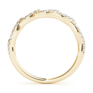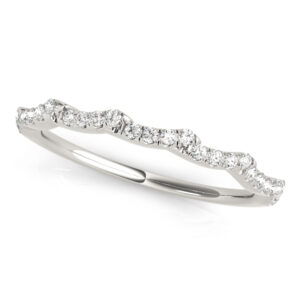 Crafted to seamlessly complement its matching engagement ring, the Abigail band features a scalloped row of prong-set diamonds and a sleek, polished finish. It also serves as a stunning stand-alone ring.